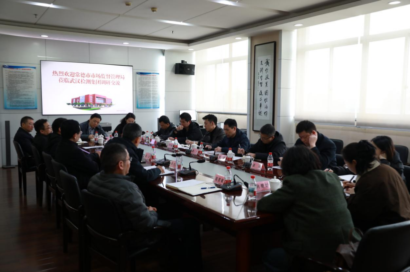 2026年3月5日,湖南常德市市場監督管理局蔡廣副局長一行11人蒞臨武漢檢測集團,就武漢檢測集團改制工作經驗開展專題調研交流。武漢市市場監督管理局組織人事處處長劉榮軍及相關處室負責人,武漢檢測集團黨委書記、董事長孫軍,黨委副書記、總經理程慶華,黨委副書記、紀委書記翟曹敏及相關部門負責人參加調研座談。