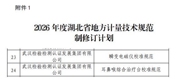 近日,湖北省市場監(jiān)督管理局發(fā)布2026年度地方計量技術(shù)規(guī)范制修訂計劃,武漢檢測集團成功入選主要起草單位,獨立承擔(dān)《瞬變電磁儀校準(zhǔn)規(guī)范》《耳鼻喉綜合治療臺校準(zhǔn)規(guī)范》兩項省級計量技術(shù)規(guī)范制定工作。此次入選既是政府部門對武漢檢測集團計量技術(shù)實力、行業(yè)影響力的高度認可,更是武漢檢測集團以技術(shù)標(biāo)準(zhǔn)賦能產(chǎn)業(yè)升級、守護社會民生的重要實踐。